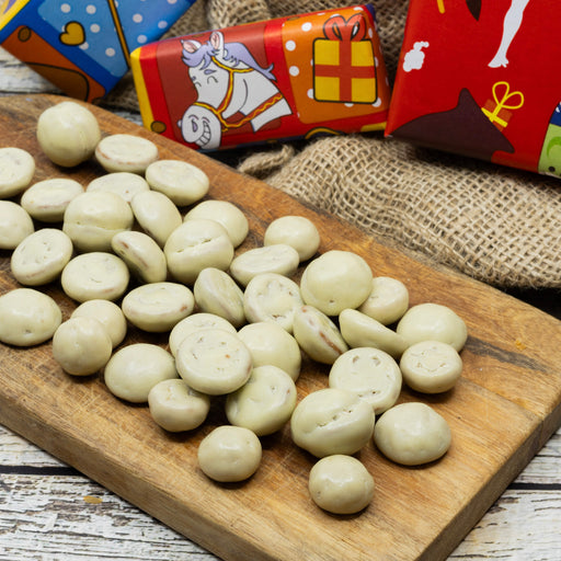 Oorspronkelijke prijs €3,25 - Oorspronkelijke prijs €3,25Oorspronkelijke prijs€3,25€3,25 - €3,25Huidige prijs €3,25| /250 gram kruidnoten met een laagje witte chocolade.